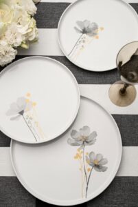 A estratégia para o segmento de porcelanas é dedicada à produção de itens que democratizam o design premium. A Tramontina apresenta como destaque a linha Hortus – com design contemporâneo e estética atemporal, o jogo apresenta uma leitura delicada da natureza aplicada ao cotidiano. As peças trazem fundo branco, valorizado por ilustrações florais em tons de cinza suave, com detalhes sutis em dourado, que acrescentam elegância à composição