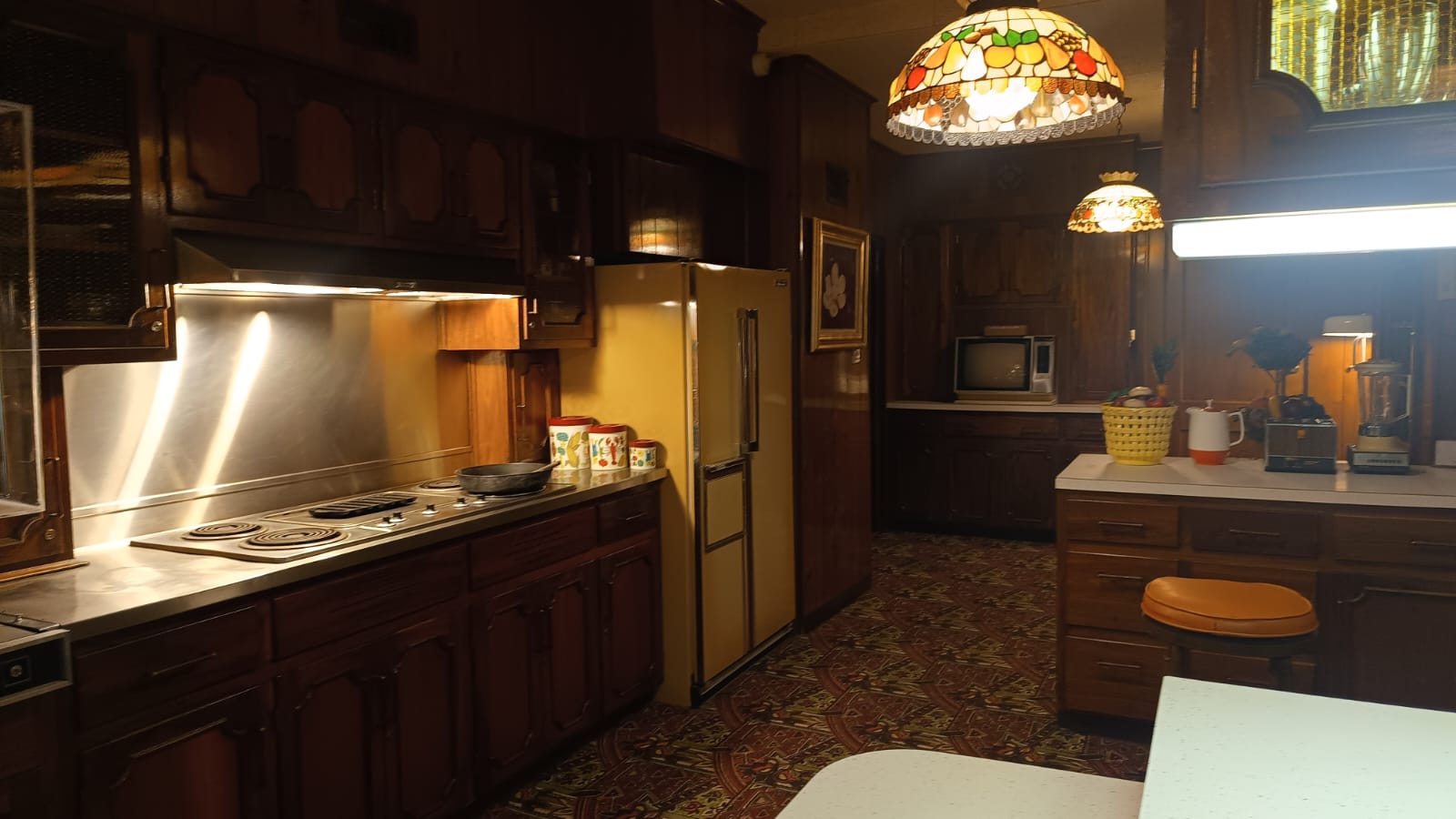 Mas o objetivo central dessa matéria é trazer também um pouquinho da arquitetura que vimos por lá e sobretudo os detalhes. A sala de visitas é acolhedora, mas tem janelas completamente vedadas. Motivo. O lado de fora, durante décadas, fãs mantiveram vigílias constantes. Ao lado, a sala de jantar onde Elvis ficava com amigos e familiares é elegante e aconchegante. A cozinha, com sua decoração típica dos anos 70, é menor em proporção, mas está impecavelmente preservada.