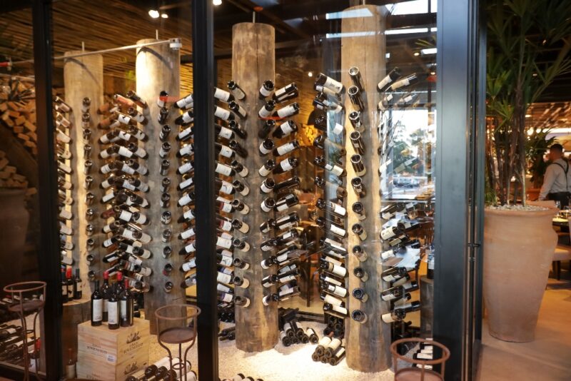 Ao centro do restaurante existe uma adega em vidro, chamando atenção, a seleção de mais de 80 rótulos de vinhos e espumantes para combinar com o cardápio da casa. Outro diferencial é a grande parrilha argentina que elucida, o manejo do processo da grelha, para com as carnes. Tudo bastante nítido e interativo para o cliente apreciar. O ofurô, cercado de pedras com cervejas importadas, logo na entrada, é outro elemento de design inusitado.