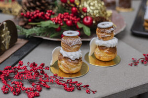Entre os itens que prometem brilhar nas confraternizações estão duas estrelas já conhecidas da temporada. A Árvore de Natal caramelizada (R$ 135) é composta por 19 Carolinas de massa choux recheadas com doce de leite, banhadas e entrelaçadas por fios de caramelo — um presente cenográfico e irresistível. Já o Anjo de Natal (R$ 40) transforma o clássico religieuse em escultura comestível: massa choux com craquelin de açúcar mascavo, recheada de brigadeiro e branquinho, moldada em forma de anjo. É decorado com asas e auréola de pasta americana, gola de merengue italiano e finalizado com um delicado toque de açúcar.